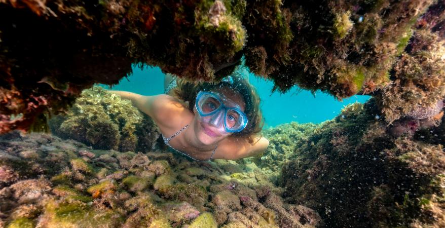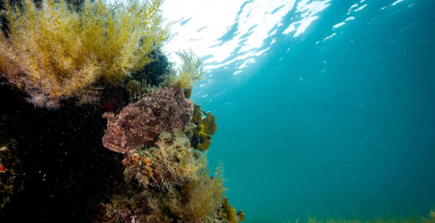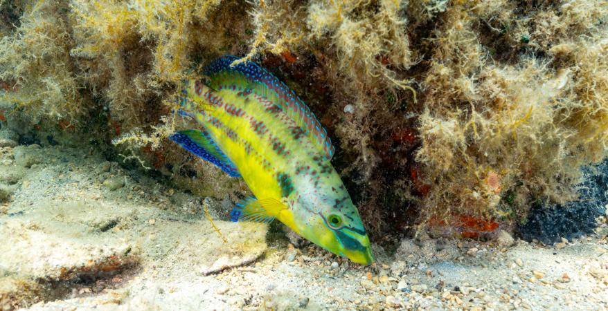 Other fish that swarm around you while exploring the ancient past include the two-banded seabream, the damselfish, the saddled seabream, the annular sea bream, the ocellated wrasse, the painted comber, and the East Atlantic peacock wrasse. Large specimens of the black scorpionfish, which look very much like a grouper except for its black colour, calmy wait at the front of the pier for you to take a closer look. For those who like smaller fish, it will be very interesting to observe various types of blennies in the shallows, displaying incredible colours.