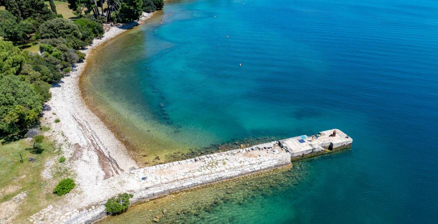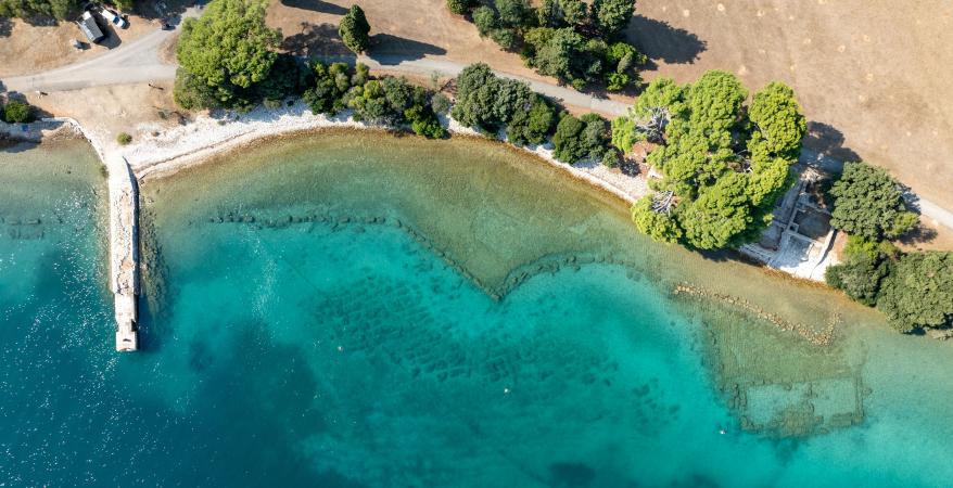 You can enjoy in discovering ancient past under the sea of Verige Bay. Since the sea level was by about a metre and a half lower in Roman times, the remains of the developed coast together with the swimming area, the unique pond and the boarding pier are found today in the shallows.