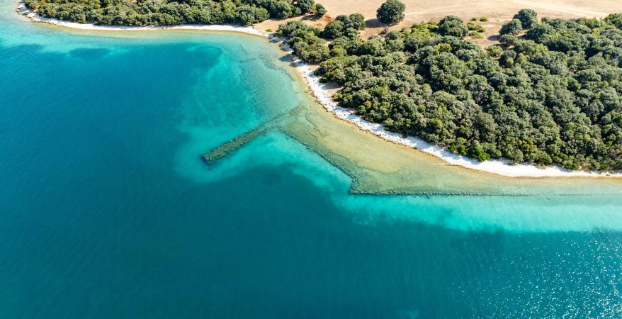 Verige Bay is located on the largest island of the Brijuni National Park, known to locals as Veli Brijun (Veliki (Big) Brijun). It can be reached by a regular boat line that departs from Fažana. When buying a ticket, it must be emphasized that you wish to joint the guided underwater path tour in Verige Bay to book your time slot. Only accompanied snorkeling is allowed here in order to preserve the valuable archaeological heritage which has graced this special islands for centuries.