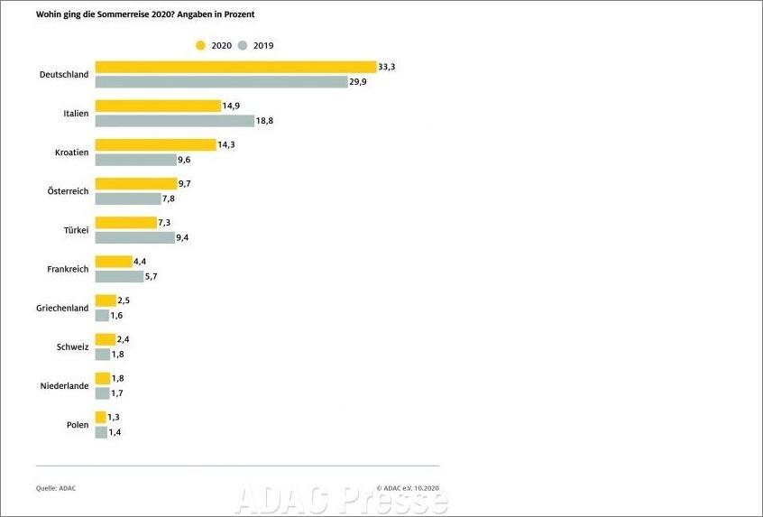 Istraživanje ADAC-a, najvećeg europskog autokluba koji broji više od 21 milijun članova, potvrdilo je okretanje Nijemaca prema domaćim destinacijama za vrijeme korona krize. Osim toga, potvrdilo je i projekcije prema kojima se Hrvatska ubrajala među traženije destinacije zbog dobre epidemiološke situacije te dobre povezanosti cestovnim pravcima sa zemljama srednje Europe, a među kojima je i Njemačka.