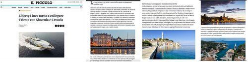 Talijanski dnevni list Il Piccolo objavio je članak u kojem informira čitatelje o ponovnom uspostavljanju brzih pomorskih linija koje povezuju Trst s hrvatskom i slovenskom obalom. Kroz tekst se ističe da brodarska kompanija Liberty Lines od 26. lipnja do 1. rujna 2025. nudi dnevne plovidbe modernim brodom Sofia M između Trsta, Rovinja, Poreča, Malog Lošinja i Pirana. Osim što omogućuje udobno i brzo putovanje bez cestovnog stresa, linija potiče održiviji oblik turizma i pristupačnu mobilnost, uključujući i mogućnost prijevoza bicikala. Poseban naglasak stavljen je na destinacije u Istri, koje se opisuje kao autentične i bogate kulturno-povijesnim i prirodnim sadržajima - od Eufrazijeve bazilike u Poreču do ronjenja kod brodoloma Barona Gautscha kraj Rovinja. Raspored plovidbi je fleksibilan, s više kombinacija tjedno koje putnicima omogućuju jednodnevne izlete ili višednevne boravke. Članak također naglašava povoljne cijene i pogodnosti za obitelji, djecu, umirovljenike i vlasnike kućnih ljubimaca.