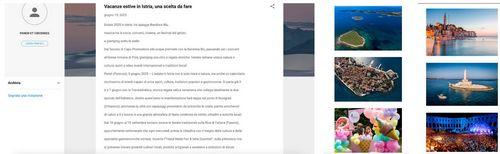 Novinar Gianluca Moreschi je na svom blogu Panem et Circences objavio opširan članak o ljetnoj ponudi u Istri pod naslovom „Vacanze estive in Istria, una scelta da fare“. Tekst donosi pregled bogate i raznolike ljetne ponude istarskog poluotoka, ističući kako regija nudi mnogo više od klasičnih ljetnih destinacija. U fokusu su događaji poput povijesne regate Transadriatica, Festival sladoleda u Poreču, koncerti u pulskoj Areni i glazbeni festival Gates of Agartha u Cave Romane. Poseban naglasak stavlja se na ekološki osviješteni turizam, glamping, biciklističke i kajakaške ture, te izlete do prirodnih i kulturnih znamenitosti kao što su Nacionalni park Brijuni, Rt Kamenjak i otočić Porer. Članak naglašava i važnost očuvane prirode kroz priznanja poput Plave zastave za plaže, pet-friendly obalu, kao i gastronomske i enološke ponude tijekom sportskih i kulturnih događanja.