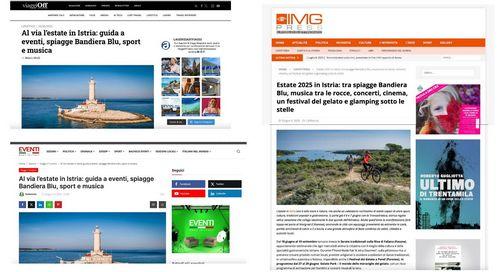 Talijanski portali Viaggi Off, Eventi News i IMGpress prenijeli su detaljan tekst o raznim aktivnostima dostupnima na istarskom poluotoku. Autor Marco Merli donosi sveobuhvatan pregled ponude Istre tijekom ljetne sezone 2025., ističući bogat program kulturnih, sportskih i glazbenih događanja, kao i raznolike prirodne i gastronomske atrakcije. Posebno se naglašavaju tradicionalne večeri u Fažani, Festival sladoleda u Poreču, noćne vođene ture kroz povijesnu jezgru Labina te prestižni teniski turnir Plava Laguna Croatia Open u Umagu s popratnim gourmet i glazbenim sadržajima. Nastavlja kako Arena u Puli ponovno postaje spektakularna pozornica za koncerte međunarodnih zvijezda poput Bryana Adamsa i Grace Jones te kako se Istra ističe i brojnim plažama s Plavom zastavom, uključujući pet-friendly obalu te lokacije idealne za obitelji s djecom. Aktivni turisti mogu uživati u biciklističkim rutama, kajaku, windsurfingu i šetnjama po rt Kamenjak, gdje se nalazi i edukativna staza „Orhideja“ te ostaci dinosaura. Opisana je i čarolija Brijunskog otočja, dok se otočić Porer ističe kao skriveni dragulj za potpuni bijeg i uživanje u spektakularnim zalascima sunca.