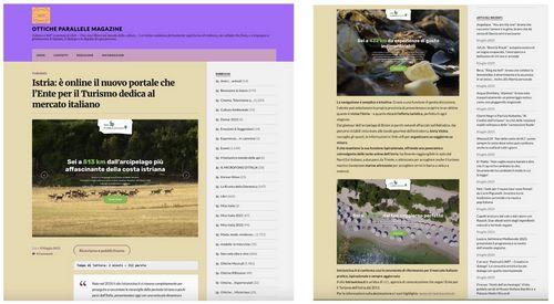 Članak objavljen na online inačici magazina Ottiche Parallele, posvećen je predstavljanju redizajniranog portala Istriavicina.it, službenog talijanskog izdanja stranice Turističke zajednice Istre. Portal, koji je pokrenut 2018., sada se predstavlja s potpuno novim, dinamičnijim i interaktivnijim dizajnom, s ciljem da talijanskoj publici približi prirodne, kulturne i gastronomske atrakcije Istre. Nova verzija stranice nudi sedam inspirativnih videa koji dočaravaju autentičan duh regije, jednostavnu navigaciju s opcijom geolokacije, i bogat sadržaj za planiranje personaliziranog odmora. Poseban naglasak stavljen je na blizinu Istre talijanskom tržištu, dostupnost tijekom cijele godine te bogatu ponudu aktivnosti, od nautičkog turizma do biciklizma i vrhunske gastronomije.