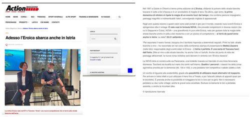 Poznati biciklistički magazine Alvento u lipanjskom je izdanju objavio veliku reportažu o prvom biciklističkom eventu NOVA Eroica Istria, koja otkriva ljepotu makadamskih ruta i gastronomije SZ Istre. Novinar Gianluca Moreschi je na svom blogu Panem et Circences objavio opširan članak o ljetnoj ponudi u Istri pod naslovom „Vacanze estive in Istria, una scelta da fare“ koji ističe kako regija nudi mnogo više od klasičnih ljetnih destinacija.