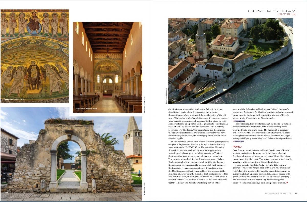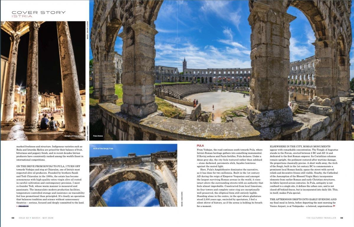 U 53. izdanju britanskog magazina The Cultured Traveller Istra je predstavljena kao naslovna destinacija broja kroz opsežnu reportažu autora Nicholasa Chrisostomoua. Već u najavi članka ističe se pozicioniranje Istre kao prostora susreta Italije, Slovenije i Balkana, oblikovanog rimskim spomenicima, venecijanskim pročeljima, srednjovjekovnim gradićima na brežuljcima te unutrašnjošću obilježenom šumama tartufa, maslinicima i vinogradima.