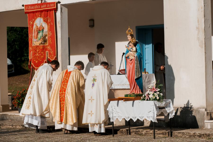 Glavni dio vjerskog programa zakazan je za 18:00 sati, kada se održava svečana koncelebrirana Sveta misa s procesijom ispred crkve. Misu će predvoditi vlč. Vladimir Brizić, pročelnik za pastoral mladih, duhovna zvanja i ministrante Porečke i Pulske biskupije.