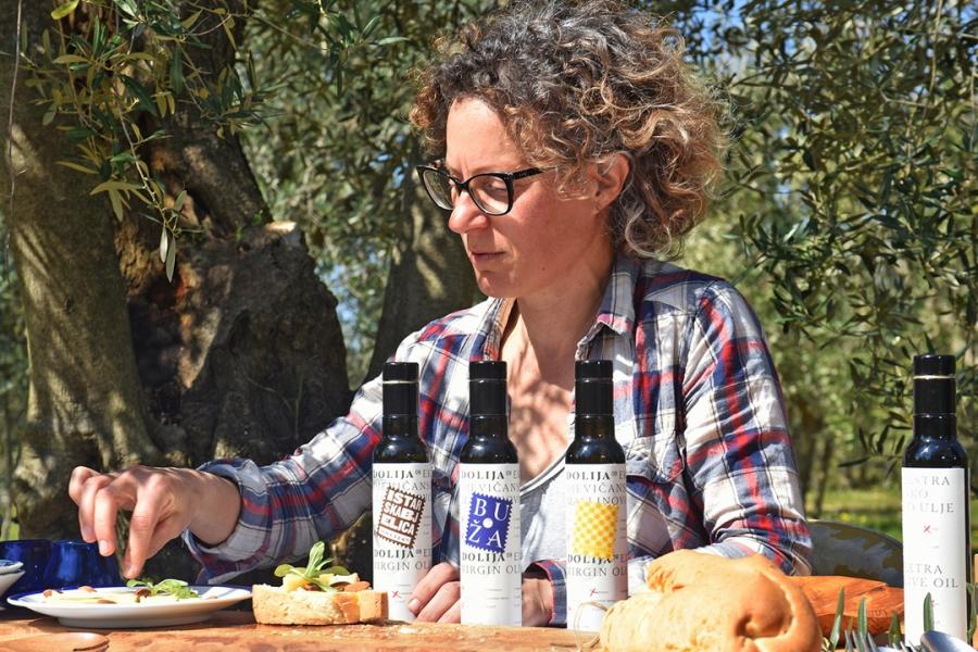 Una promettente realtà del comprensorio di Marčana. Il progetto risale al 2008 e nasce per volontà di Rafael Vareško; mentre oggi alla conduzione dell’azienda c’è Marija che gestisce un patrimonio di 8 ettari di superficie specializzata con 2mila olivi messi a dimora. Panello di Flos Olei seleziona l’etichetta proposta, l’ottimo Extravergine monocultivar Dolija 08 - Buža che appare alla vista di un bel colore giallo dorato intenso con delicate tonalità verdi, limpido.