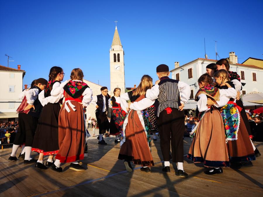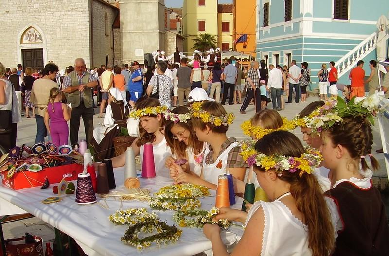 Rassegna folcloristica delle scuole elementari dell’Istria, presentazione della cultura per bambini: giochi, filastrocche, giocattoli, oggetti quotidiani, storie… presentazione della fabbricazione dei giocattoli d’una volta e degli strumenti musicali, di abiti popolari e acconciature tradizionali